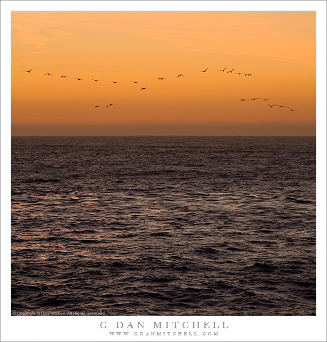 Pelican Flock, Dusk. Point Lobos State Park, California. December 30, 2007. © Copyright G Dan Mitchell.