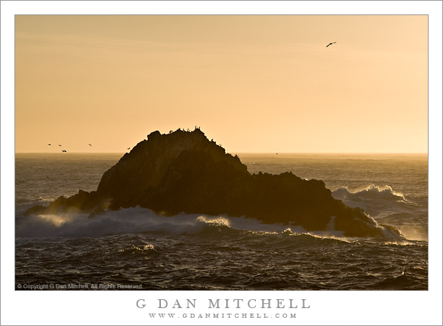 Bird Rock and Winter Surf, Dusk. Point Lobos State Reserve, California. December 30, 2007. © Copyright G Dan Mitchell.