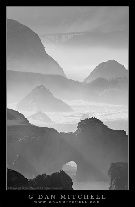 Rocky Creek Bridge, Surf and Fog. Big Sur Coastline, California. February 9, 2008. © Copyright G Dan Mitchell.