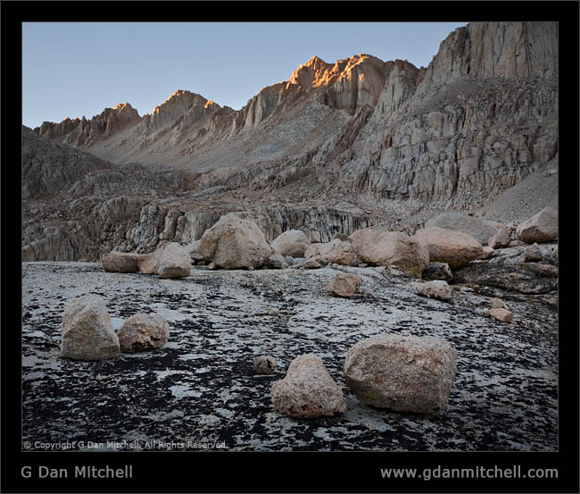Last Light, Miter Basin. Sierra Nevada, California. August 6, 2007. © Copyright G Dan Mitchell.